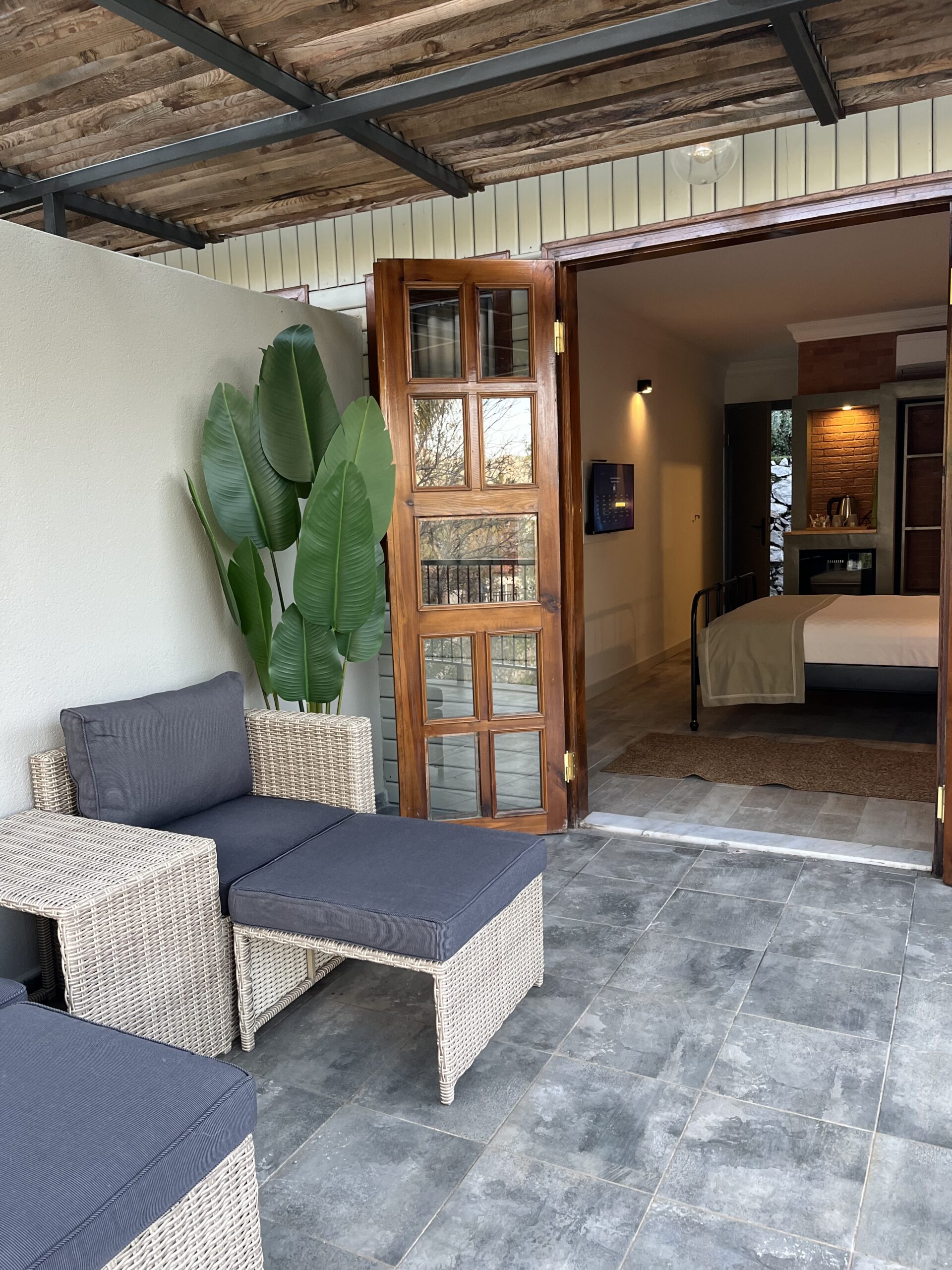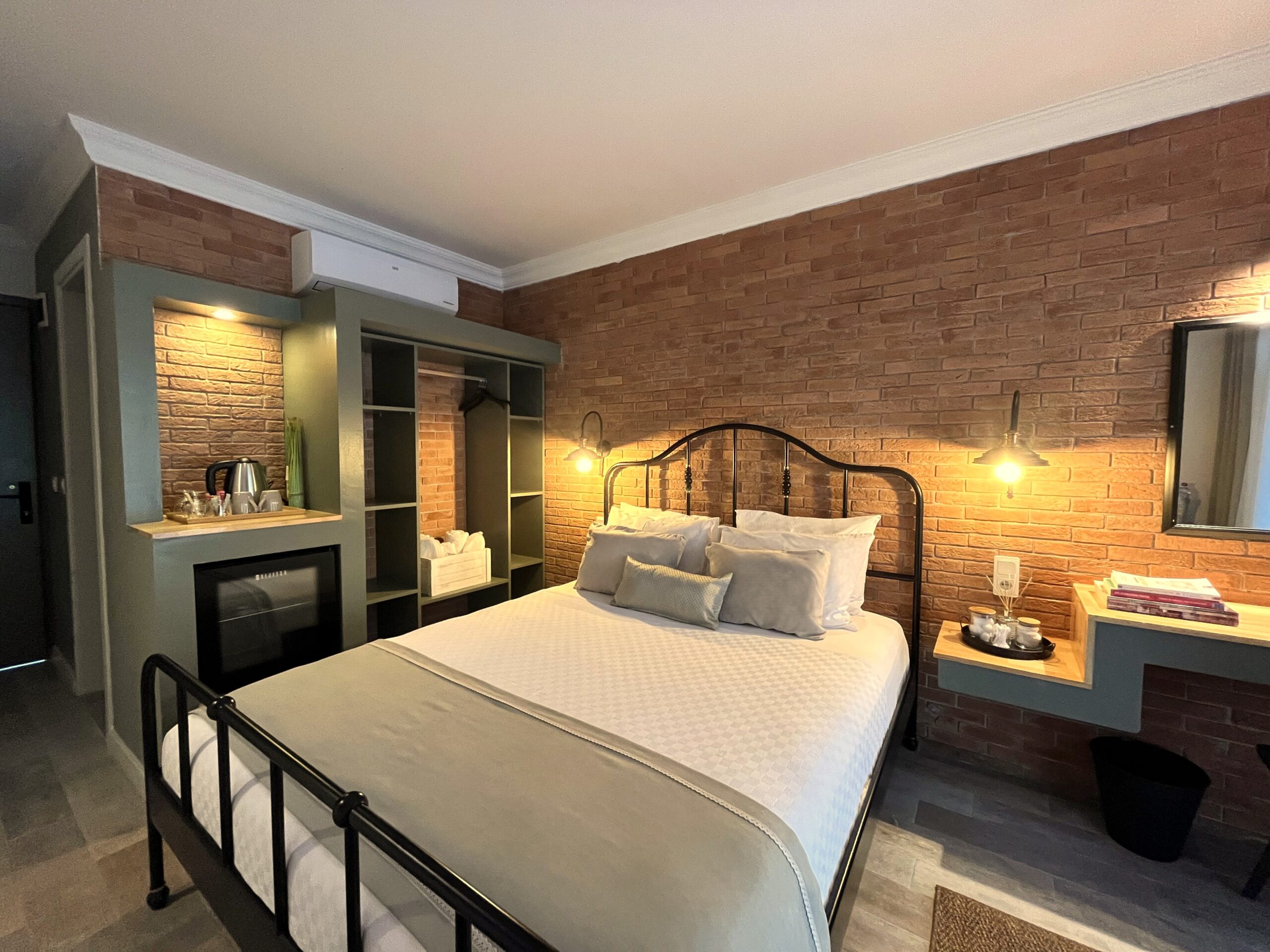 Teras hariç 18 m² iç alan ve 22 m² teras genişliğiyle tasarlanan bu özel odalarımız, tuğla kaplı duvarlarıyla endüstriyel tasarımın modern izlerini taşır. Doğal ışıkla bütünleşen yalın mimarisi, şıklığı ve işlevselliği bir araya getirir.